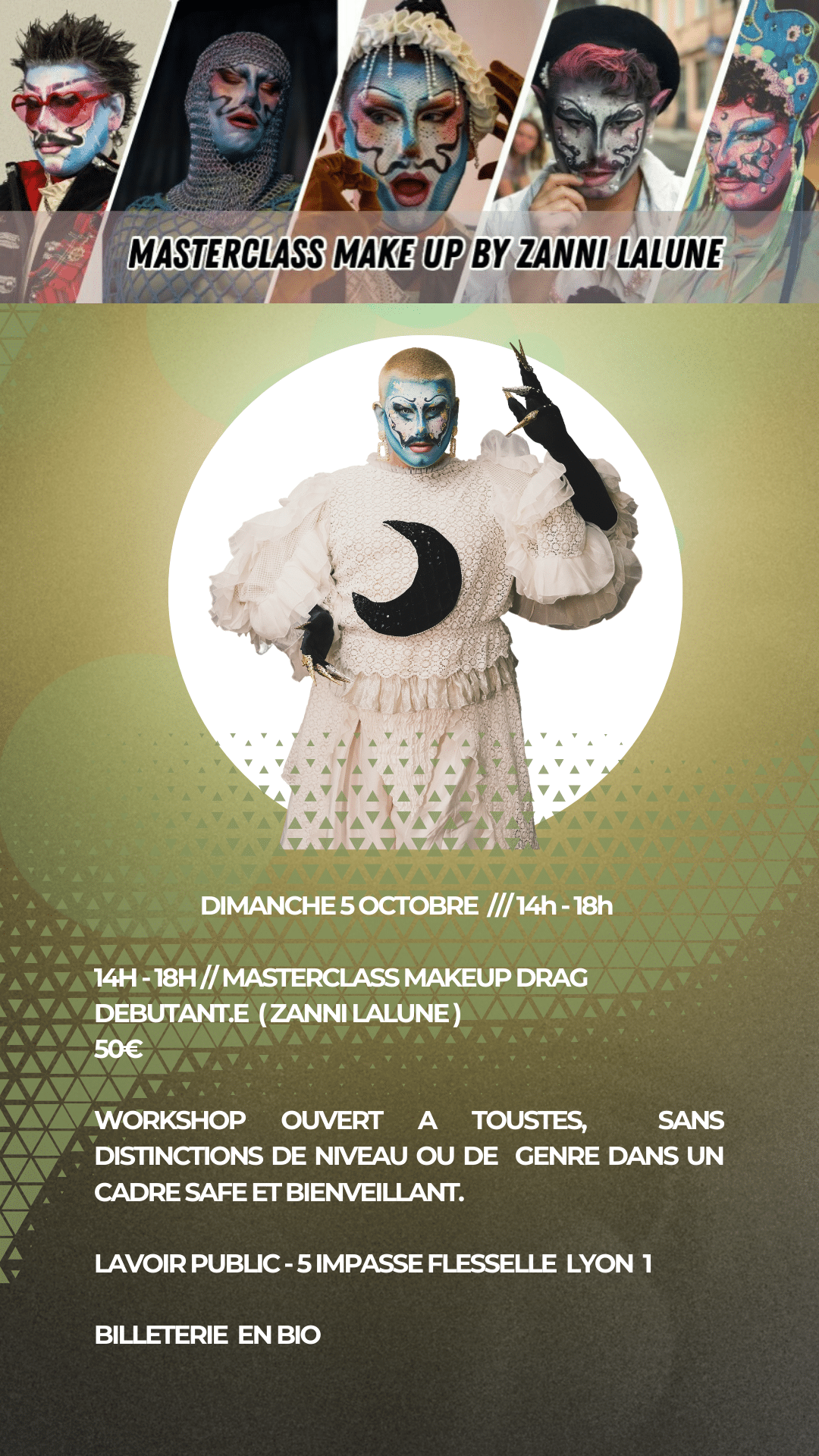 Envie de vous lancer dans le drag ? Laissez-moi vous guider dans vos premiers pas et vous accompagner avec une formation technique solide mais accessible à toustes et dans un espace safe et bienveillant. Dragking, dragqueer, dragqueen, club kid, ou encore monstre et créature – plongez dans l’univers fascinant du maquillage drag avec des fondations solides.