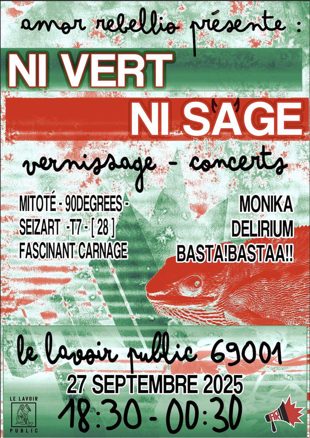 Exposition de graphisme / photographie / dessins, animée par des concerts rock fusion / punk de groupes émergents.