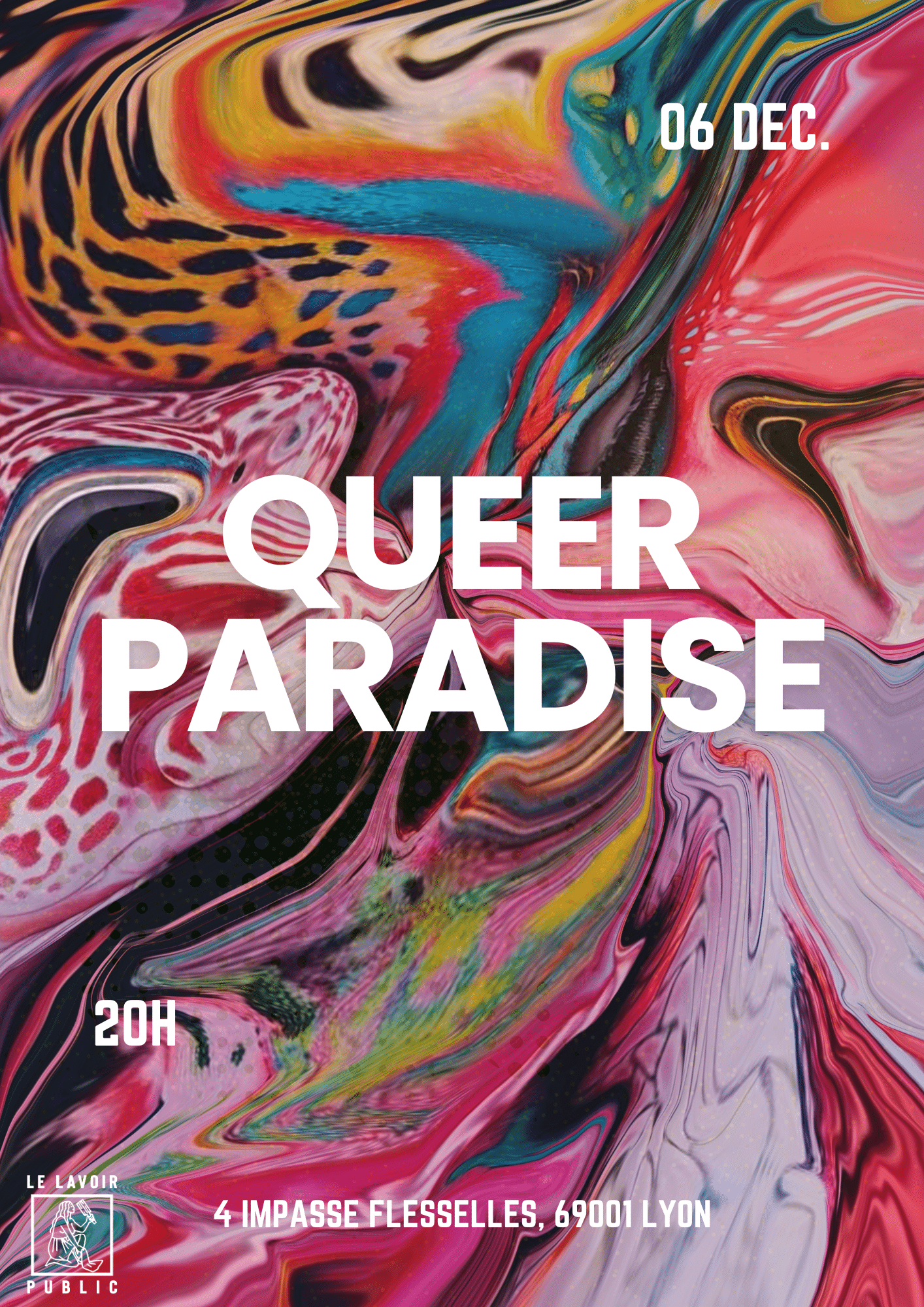 Q’Paradise est un espace créatif itinérant, où l’on explore et mélange les cultures et les genres d’art, en invitant des artistes prêt·es à expérimenter et à sortir des cadres.