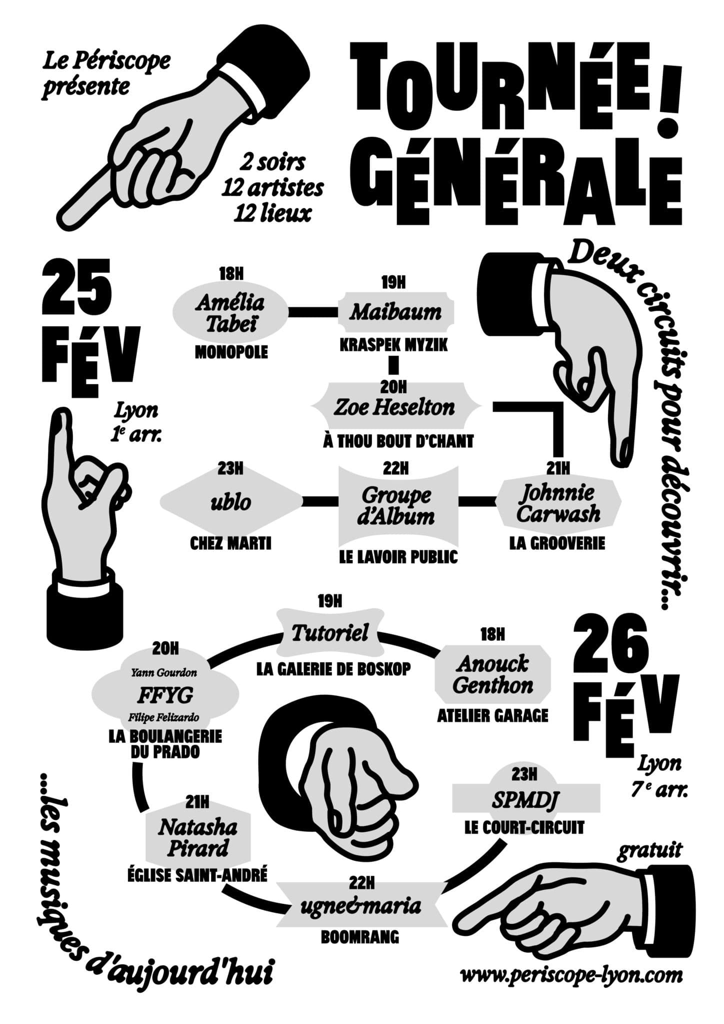 Attaché à la musique live dans les lieux de proximité, Le @periscope.lyon s’associe à 12 lieux des 1ᵉʳ et 7ᵉ arrondissements pour deux soirées de concerts déambulatoires : bars associatifs, salles de concerts, petits lieux culturels, atelier d’impression, galerie, église…