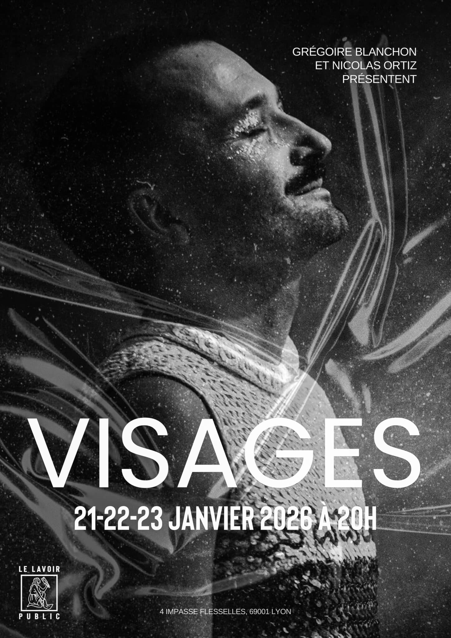 « Visages, c’est d’abord le visage de l’autre, des autres. C’est le visage de Nicolas à l’accordéon, c’est le mien au chant, c’est le visage des spectateurices: là où l’on peut vraiment se rencontrer. Le visage, c’est l’endroit où se loge la singularité de chacun.e d’entre nous, c’est ce qui, quand on a vraiment rencontré le visage de quelqu’un.e comme l’écrit Lévinas, nous empêche de le tuer. Aujourd’hui où le monde se déchire, où la violence a envahi l’espace public, affirmer l’importance des visages, c’est dire le mystère de l’autre, sa beauté irréductible à respecter, à accueillir, à aimer. Ce sont aussi les différents visages de la musique que nous allons traverser: dans la chanson, dans la pop, nous allons explorer différentes influences (du disco, de la bossa, de la musique baroque, de la new wave…) avec l’accordéon et la voix. Afin de donner à chacun de ces morceaux un nouveau visage. Et puis, le visage, c’est aussi l’endroit où l’on peut s’inventer comme je m’invente en écrivant et en composant des chansons, et comme Nico les réinvente avec ses arrangements à l’accordéon en modelant leur visage vers de nouveaux paysages ». Grégoire Blanchon